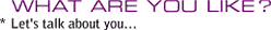 I've added a few things in 'My Stuff' that Sophie thinks are very 'me'. In return I've put some more questions in 'What Are You Like?' so I can decide what's very 'you' about you. Don't worry, it's basic stuff really - the colour of your hair, your height, your weight (!!!!).